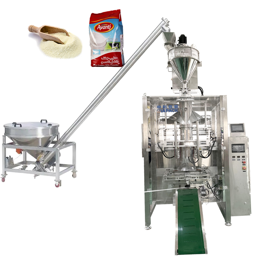 Bungkusan serbuk tepung / susu / serbuk kacang / jagung mesin pembungkusan jagung sesuai untuk pembungkusan bahan-bahan cair rendah, seperti serbuk susu, bubuk albumen, farmaseutikal, bumbu, minuman padat, dextrose, kopi, racun perosak pertanian, aditif makanan dan sebagainya. Digunakan secara meluas dalam industri makanan, industri perubatan atau industri kimia.