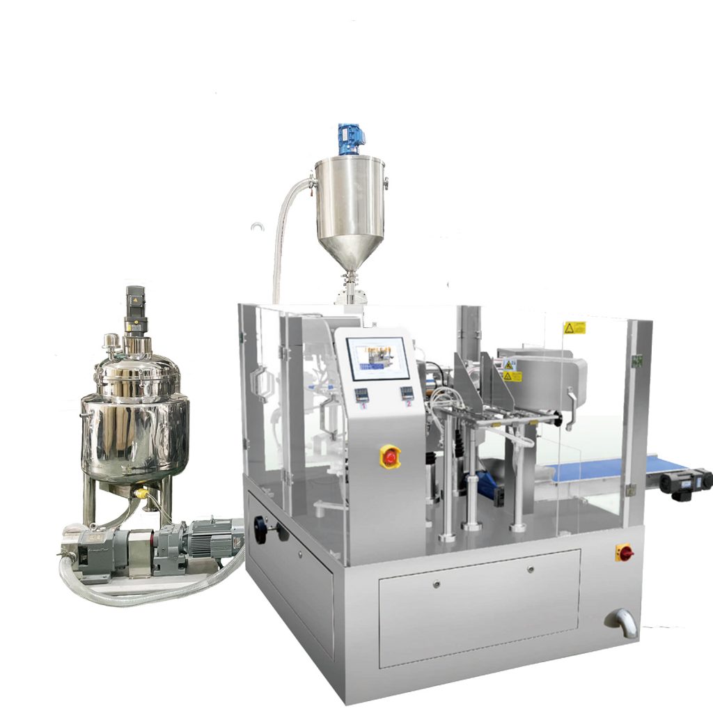 Dilengkapi dengan pengisi omboh sebagai sistem dos, ia digunakan secara meluas untuk pembungkusan cecair dan tampalan, seperti detergen, pelembut, syampu, gel mandi, susu, air, jus, sos soya, minyak, saus tomat, mayonis dan sebagainya.