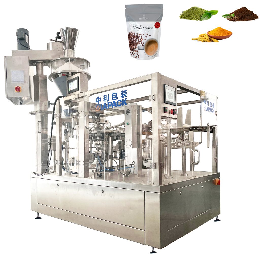 Mesin pembungkusan beg berputar dengan dos yang berbeza (seperti multihead weigher, filler auger, pengisi cecair dan lain-lain), boleh sesuai untuk pembungkusan automatik untuk granular, serbuk, cair, paste dan lain-lain. Jenis rpoduct yang berbeza dengan kantung berdiri premade, kantong rata dan sebagainya.