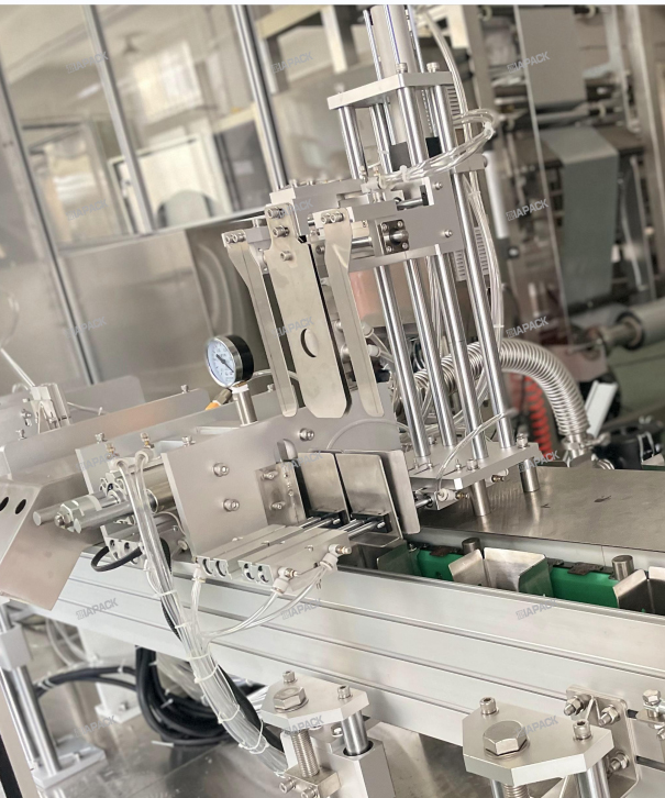 Mesin ini adalah reka bentuk khas untuk membuat beg gusset dengan pelabelan atas. Selepas beg penuh dengan produk jatuh pada mesin ini. Mesin ini akan membawa beg, melalui satu kali lipat mulut beg dan kemudian melekatkan label. Rangka mesin yang dibuat oleh SUS304 .PLC dan skrin sentuh diguna pakai oleh jenama Siemens .Dan bahagian pneumatik mengguna pakai jenama SMC .Komponen Elektrik Utama menggunakan jenama Omron dan Schneider. Mesin ini berfungsi dengan mesin pembungkusan automatik untuk mencapai pelabelan atas beg siap. Mesin ini boleh mencapai fungsi secara automatik daripada label dipisahkan , Penghantaran label . Pengesan label dan menekan label .