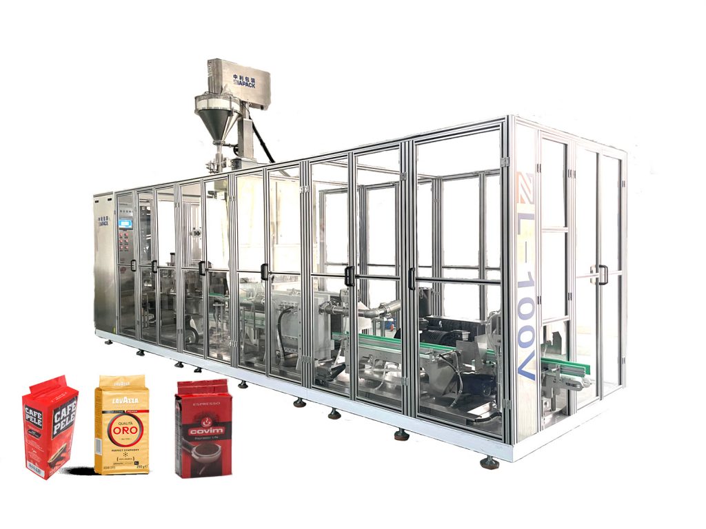 Mesin ini termasuk satu set mesin pembungkusan dan pengedap beg menegak ZL520. Satu set mesin penimbang baldi berganda ZL2000, Satu set mesin pembungkus vakum ZL-100V, dan satu set penghantar keluaran. Mesin ini digunakan secara meluas untuk pembungkusan kimia farmasi makanan dan produk lain dalam serbuk atau butiran kecil. Seperti serbuk kopi, serbuk yis dan sebagainya. Keseluruhan mesin yang menggunakan bahagian dalam mengepam ke produk vakum. Tahap vakum sangat tinggi dan kelajuan pembungkusan sangat tinggi boleh mencapai 15bag/min. Produk siap sangat bagus dan mempunyai rak yang panjang kehidupan.