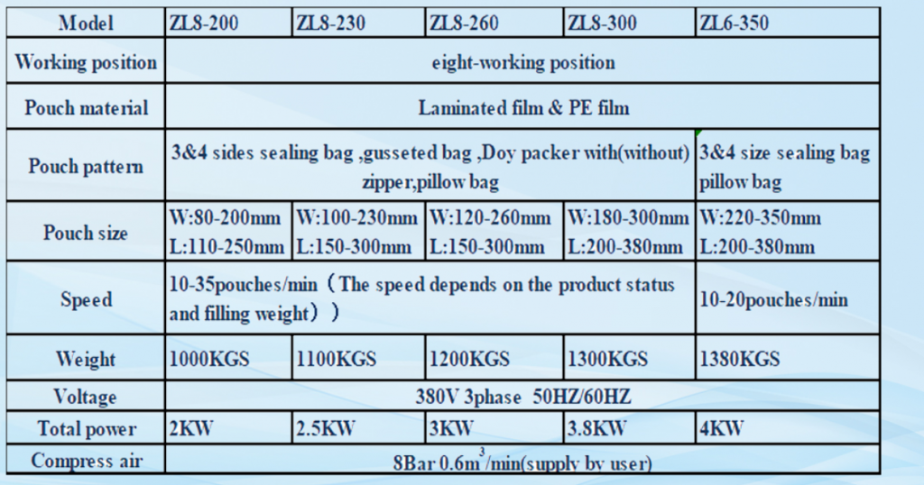 - Kelajuan mesin ini diselaraskan dengan penukaran frekuensi dengan julat, dan kelajuan sebenar bergantung pada jenis produk dan kantung