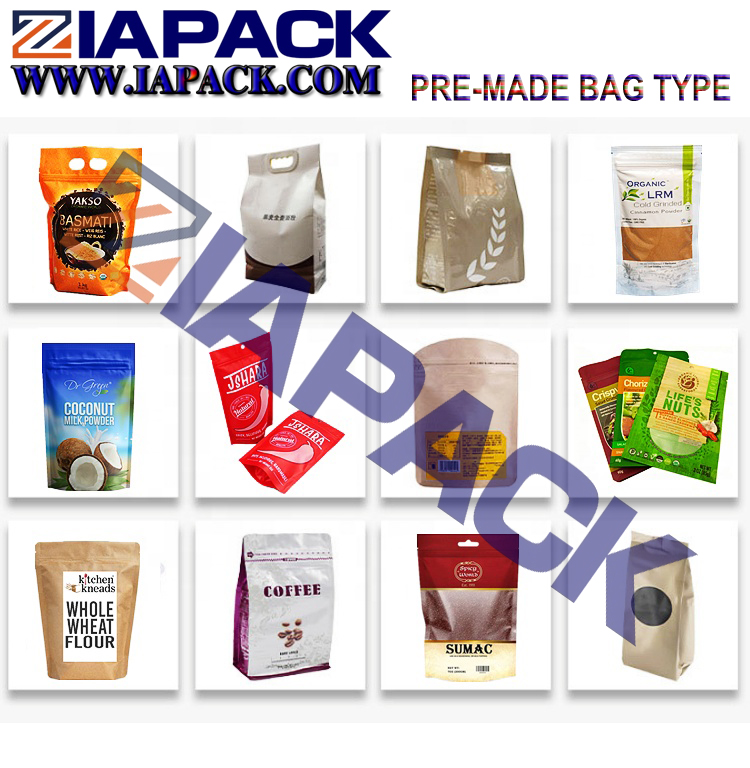 Permohonan secara meluas untuk menimbang penyelesaian pembungkusan meterai untuk kantung premade untuk padi, biji, pakan, kacang, gula, popcorn, kerepek, kacang, makanan haiwan peliharaan, bahagian teh dan logam atau plastik, bahan makanan auto, berat, dan lain-lain.