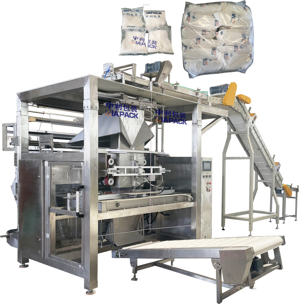 - Untuk pembungkusan sekunder (membungkus uncang kecil secara automatik ke dalam beg plastik besar):